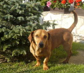 Fotos:Beschreibung:Die ersten 4 Jahre meines Lebens waren nicht schlecht. Leider war Herrchen bei meiner Anschaffung schon alt und auch nicht mehr gesund. Jetzt ist er verstorben und ich bin damit obdachlos geworden. Die entfernten Verwandten von Herrchen, die auf unserem Grundstück aufgetaucht sind, wollen mit mir nichts zu tun haben. Zunächst haben sie nur geschimpft, wenn ich kam. In den letzten Tagen hat es aber auch schon Fusstritte gegeben. Die Tierschützer vor Ort sind daher sehr bemüht, mich so schnell wie möglich aus meiner misslichen Lage zu befreien. Sollten Sie einen kleinen, sehr anhänglichen, krummbeinigen Freund für 's Leben suchen, melden Sie sich unter www.notfallhundeungarn@yahoo.de Meine Reisetasche habe ich vorsorlich schon gepackt, damit ich nur nicht den Start versäume. 17.9.11: Ich habe den Start nicht verpasst und bin munter und guter Dinge angekommen. Eigentlich habe ich auch schon ein Zuhause. Meine Familie hat mich aber zunächst als Pflegehund aufgenommen, da schon ein vierbeiniger Kumpel vorhanden ist: Coco. Ich könnte mir uns beiden gut als Gespann vorstellen, aber noch schreit Coco in den höchsten Tönen, wenn er mich sieht. Solche Geräusche kannte ich bislang nicht, sie machen mir Angst. Die erste Nacht wurde die Situation aber gut gelöst: Coco blieb mit Frauchen im Schlafzimmer, Herrchen zog mit mir ins Gästezimmer. Auch wenn Coco noch keine Zustimmung zu meinem endgültigen Einzug gegeben hat, eines ist sicher: Ich bin in Sicherheit und kann daher meinen Platz auf der Seite der Sorgenkinder frei machen. 3.10.11 Mein Wunsch ist in Erfüllung gegangen: Ich darf bleiben ! Die Zweibeiner hatte ich sofort überzeugt, aber bei Coco musste erst Überzeugungsarbeit geleistet werden. Mittlerweile haben wir uns schon gut zusammengerauft und toben zusammen im Garten. Nur in einem Bereich kennt Coco keine Freunde: Frauchens Bett ! Das ist für ihn die absolute Tabuzone. Na gut, es gibt Schlimmeres. Ich schlafe dann eben im Hundebett.... | ||