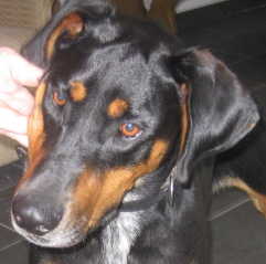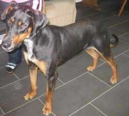 Fotos:Beschreibung:Ich bin ein ungarischer Brackenrüde und habe stolze 68cm Schulterhöhe. Auch sonst bin ich ein bildhübscher Kerl, der vor Kraft und Temperament nur so strotzt. Sie meinen, dann würde ich auch vor Selbtbewusstsein strotzen ? Nicht so richtig, ich habe vom normalen Leben scheinbar nichts mitbekommen. Als meine Pflegemutter mich mit in die Wohnung nahm, habe ich fast einen Kulturschock erltten. Ich bin aufgeregt auf und ab gerannt und habe überall markiert. So langsam habe ich mich an die Umgebung gewöhnt und finde sie gut. Nach dieser ersten Aufregung ging es nach draussen und als erstes begnete ich Riesen- Lebewesen. Mir wurde erklärt, dass es sich um ganz verträgliche Pferde handelt. Mag ja sein, ich hatte aber kein Bedürfnis, ihre Verträglichkeit zu testen. Dann erzählte man mir, dass wir nun Dolly besuchen. Plötzlich stand vor mir ein weisses Ungetüm, das auch noch auf mich zukam ! Meine Pflegemama erklärte, dass es sich um ein ganz liebes Mädchen handelt, ein 20jähriges Schaf ! So etwas hatte ich noch nie im Leben gesehen und ich habe Angst gehabt, einen Herzanfall vor Schreck zu bekommen. Meine Pflegemutter hatte Verständnis und ging mit mir zurück. Zu meinem völligen Entsetzen kamen dann gackernde weisse Federtiere auf uns zugerannt. Man erklärte mir, dass dies die zahmen Hühner seien, die vor Jahren schon dem Kochtopf auf ewig entrinnen konnten. Auch sie sollen ganz lieb sein. Für mich war das alles zuviel ! Grösse hin oder her: Ich wollte nur noch auf den Arm und in Sicherheit gebracht werden. Sie sehen: Charmanter Riese mit Hasenherz sucht zweibeinige Beschützer, die ihm mit viel Einfühlungsvermögen das Leben eines geliebten und verwöhnten Familienmitgliedes näher bringen. Vielleicht melden Sie sich mal unter notfallhundeungarn@yahoo.de ? Sie werden feststellen, dass ich nicht nur sehr lieb und anhänglich bin, sondern auch sehr bemüht bin, alles richtig zu machen 28.8.11: Ich muss bezüglich meiner Rasse ein kleine Korrektur anbringen: Ich bin ein Dobermann-Brackenmischlingsrüde. Auch wenn die Zeichnung von der ungarischen Bracke kommt, muss ich klar stellen, dass ich mit der Jagd absolut nichts im Sinn habe. Ich bin nur ständig auf der Jagd nach menschlicher Zuwendung. Falls Sie meinen, dass wir uns mal beschnuppern sollten: Momentan lebe ich in der Nähe von Essen in NRW. 28.6.16: Irgendwie hat man mich immer wieder übersehen, dabei wohne ich schon 3 Jahre bei meiner Familie und habe alles gut im Griff. | ||