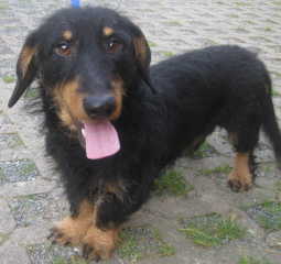 Fotos:Beschreibung:Mein Bruder Moritz und ich , wir sind 2 einjährige Rauhhaardackelmischlingsrüden. Warum man uns in die Tötung gebracht hat, können wir uns nicht erklären. Wir sind beide lieb und anhänglich. Gerne würde ich sagen, wir haben - unserem Alter entsprechend- viel Blödsinn und dumme Streiche in unseren Dackelköpfen. Dies ist aber im Moment nicht der Fall. Wir haben augenblicklich nur eines im Kopf: Wie können wir unser Leben retten ? Auch unsere Zeit ist eigentlich schon abgelaufen. Derzeit hängen wir natürlich sehr aneinander, wären aber auch bereit, uns zu trennen. 30.9.11? Irgendwie scheint mein Bruder Moritz besser anzukommen als ich. Niemand kann das begreifen, denn ich bin ebenso hübsch, unkompliziert und verschmust, nur etwas kräftiger als Moritz. Sie sollten den Weg nicht scheuen und uns in Niedersachsen unbedingt besuchen Ich wette, Sie können uns nicht widerstehen. 29.10.11: Unsere Zweibeiner konnten Moritz und mir tatsächlich nicht widerstehen. Im neuen Zuhause ist besonders toll, dass wir nicht nur unsere Menschen haben, es ist auch eine grössere Hundeseniorin da, die uns zeigt, wie man sich als Familienmitglieder benimmt. | ||