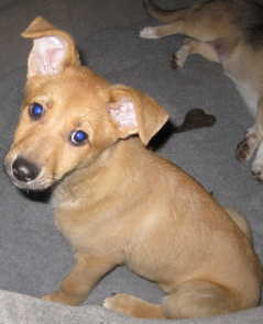 Fotos:Beschreibung:Hallo, Ich bin Krümel, 15 Wochen alt. Von ,meinem Herrchen wurde ich von einem Bauernhof geholt, kurze Zeit später gab er mich bei der Polizei ab mit der Begründung, es gehe ihm nicht gut, ich sei zu anstrengend. Ich habe ihm nicht nachgetrauert, ich fühle mich in meiner Pflegestelle sehr wohl. Objektiv bin ich zusammen mit Mücke der Kleinste, aber ich mische überall mit. Am liebsten spiele ich mit dem 30-Kilo-Rottweiler meiner Pflegemutter. Er bringt mir bei, wie ich mich zu benehmen habe. Ich hätte nichts dagegen, hier alt zu werden. Aber als Pflegehund muss ich mir wohl ein eigenes Rudel suchen. Also, ich werde wohl nicht ganz mittelgross werden, bin fröhlich, verspielt und selbstbewusst, gleichzeitig anhänglich und verschmust. Wollen wir zusammen durch's Leben gehen ? Ich jedenfalls bin zu allen Schandtaten bereit und warte in der Nähe von Hannover auf unser erstes Treffen. 29.1.12: Ich habe mein Ziel erreicht und bin adoptiert worden. In meinem neuen Heim wartet jede Menge an Arbeit auf mich: Meine Menschen haben ihren alten Partner verloren und immer viel Rücksicht auf meinen betagten Vorgänger genommen. Jetzt weht ein frischer Wind im Haus und ich halte alle auf Trab. Aber nicht nur die Menschen. Auch die Laufenten durften schon beweisen, dass dieser Name richtig für sie ist... | ||