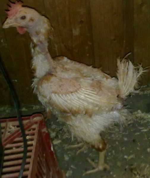 Fotos:Beschreibung:Hoppla, lebendes Hundefutter auf der Notfallhundeseite ? Nein, ich will weder Hunde- noch Menschenfutter sein !!! Ich bin auch kein Hund, dennoch bin ich ein Sorgenkind: Zusammen mit 1200 Leidensgefährtinnen sorge ich in sogenannter Bodenhaltung für Ihr Frühstücksei. Im Januar aber ist Schluss, da heisst es für uns: Kopf ab ! Das aber wollen die Tierschützer verhindern. Sie haben die Möglichkeit, uns alle zu übernehmen. Dazu müssen aber geeignete Stellen vorhanden sein, dh. Stellen, in denen wir für den Rest des Lebens sowohl dem Kochtopf als auch der Bratröhre entronnen sind. Ich möchte zum ersten Mal in meinem Leben das Sonnenlicht sehen, möchte zum ersten Mal richtig scharren dürfen, fühlen, wie sich eine Wiese anfühlt und möchte ein richtiges Federkleid bekommen. Sie könnten mir und meinen Leidensgenossinnen bei der Verwirklichung dieses Traumes helfen, wenn Sie uns in kleinen Gruppen in fuchs- und mardersicheren Gehegen aufnehmen könnten. Wir versprechen, dass wir uns mit den besten Eiern aus echter Freilandhaltung bedanken werden. 17.12.12 : Noch sitzen wir in unserer drangvollen Enge, aber es besteht immer noch die Hoffnung, dass im neuen Jahr alles besser wird: Die Tierschützer haben für 800 von uns Plätze gefunden, wo wir zum erste Mal erfahren dürfen, was es bedeutet, frei laufen zu können und scharren zu dürfen. Drücken Sie die Daumen für uns restlichen 400 ! Vorübergehnd aber mache ich den Platz unter den Sorgenkindern frei, da für die Hunde aus der Tötung zu Weihnachten die Frist abläuft und sie daher dringender sind. 30.3.13: Ich habe es geschafft und lebe jetzt in der Nähe von Essen. Mein neues Leben ist toll, meine Federn kommen wieder und ich habe mich -zusammen mit 11 Leidensgenossinnen -mit wunderbaren Ostereiern von frei laufenden Hühnern bedankt. Noch sind wir bei diesen Temperaturen im Stall, sobald der Frühling kommt, geht es ab nach draussen. Der Tierschutz hatte für alle Stellen gefunden, aber leider kam die Hilfe für 200 von uns zu spät: Sie waren Opfer der Haltungsbedingungen geworden. | ||