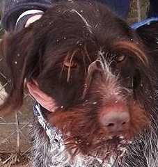 Fotos:Beschreibung:Ich bin die Funny, eine ca. 7 Jahre alte, mittlerweilen kastrierte Dt.-Drahthaarmischlingshündin. Mein bisheriges Leben war alles andere als schön, was man auch derzeit noch an meinem Fell sehen kann. Ich bin anhänglich und verschmust; nach einer Erholung werde ich wohl, meiner Rasse entsprechend, auch unternehmungslustig und lauffreudig werden. Darf ich für die zweite Lebenshälfte bei Ihnen einziehen ? 25.4.16: Über eine andere Tierschutzorganisation durfte ich die Reise antreten | ||
