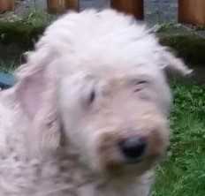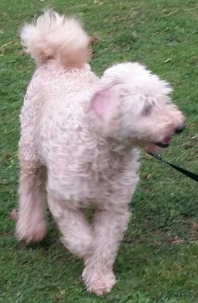 Fotos:Beschreibung:Sie sagen, ich sähe merkwürdig aus ? Ich bitte Sie, es kann sich doch wohl jeder erinnern, wie er sich selbst nach einem misslungenen Frisörbesuch gefühlt hat ! Mit Haaren bin ich nämlich eine ausgesprochen hübsche Hundedame von 3 - 4 Jahren und einer Schulterhöhe von 45 cm. Zunächst hatte ich Eingewöhnungsprobleme, da ich eine extreme Ohrenentzündung und wahnsinnige Schmerzen hatte. Nach 2 Tierarztbesuchen geht es mir aber schon viel besser und ich fange an, mein neues Leben zu geniessen. Ich bin nicht nur hübsch, lieb und unternehmungslustig, ich bin auch verträglich. Meine Pflegemutter hat als Gnadenbrottiere Schafe, Hühner und Enten, mit allen habe ich keine Probleme. Sobald ich mein Fotoshooting hinter mir habe, werden auch Sie sich davon überzeugen können, dass ich auch optisch ein Volltreffer bin. 27.10.16: Na, erkennen Sie mich wieder ? Jetzt dürfen Sie sich an dem grossen Rätselraten beteiligen: Pudelmischling, Wasserhundmischling oder Pumimix ? Ich kann leider nichts dazu sagen. Fest steht nur eines: Ich bin Menschen gegenüber eher unterwürfig, wenn ich Vertrauen geschöpft habe, aber sehr anhänglich, verschmust und verspielt. Hunden gegenüber bin ich selbstsicher und verträglich, Schafe, Enten und Hühner ignoriere ich , zeige keinen Jagdtrieb. Wenn Sie mich kennenlernen, werden Sie feststellen, dass meine Lockenpracht nicht herunterrieselt,d.h., ich nicht haare; dann werden Sie sicher auch den kleinen Schönheitsfehler übersehen, dass meine Ohren nach Abklingen der schlimmen Entzündung noch etwas haarlos sind. 4.12.16: Ich habe mein Zuhause gefunden. Frauchen erklärt, ich sei ihr Schatten, d.h., ich begleite sie aus Schritt und Tritt. Ist doch klar: Mein erstes richtiges Zuhause will ich eben nie wieder verlieren. Nachdem meine Haarpracht sich wieder erholt hatte, waren sowohl die Tierärztin als auch meine Pflegemuuter überzeugt, dass in mir ein Flat coated Terrier steckt. Die Fotos schicke ich noch, aber die Antwort auf diese Frage ist zumindest mir völlig schnuppe... | ||