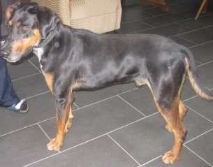 Fotos:Beschreibung:Ich bin ein ungarischer Brackenrüde und habe stolze 68cm Schulterhöhe. Auch sonst bin ich ein bildhübscher Kerl, der vor Kraft und Temperament nur so strotzt. Sie meinen, dann würde ich auch vor Selbtbewusstsein strotzen ? Nicht so richtig, ich habe vom normalen Leben scheinbar nichts mitbekommen. Als meine Pflegemutter mich mit in die Wohnung nahm, habe ich fast einen Kulturschock erltten. Ich bin aufgeregt auf und ab gerannt und habe überall markiert. So langsam habe ich mich an die Umgebung gewöhnt und finde sie gut. Nach dieser ersten Aufregung ging es nach draussen und als erstes begnete ich Riesen- Lebewesen. Mir wurde erklärt, dass es sich um ganz verträgliche Pferde handelt. Mag ja sein, ich hatte aber kein Bedürfnis, ihre Verträglichkeit zu testen. Dann erzählte man mir, dass wir nun Dolly besuchen. Plötzlich stand vor mir ein weisses Ungetüm, das auch noch auf mich zukam ! Meine Pflegemama erklärte, dass es sich um ein ganz liebes Mädchen handelt, ein 20jähriges Schaf ! So etwas hatte ich noch nie im Leben gesehen und ich habe Angst gehabt, einen Herzanfall vor Schreck zu bekommen. Meine Pflegemutter hatte Verständnis und ging mit mir zurück. Zu meinem völligen Entsetzen kamen dann gackernde weisse Federtiere auf uns zugerannt. Man erklärte mir, dass dies die zahmen Hühner seien, die vor Jahren schon dem Kochtopf auf ewig entrinnen konnten. Auch sie sollen ganz lieb sein. Für mich war das alles zuviel ! Grösse hin oder her: Ich wollte nur noch auf den Arm und in Sicherheit gebracht werden. Sie sehen: Charmanter Riese mit Hasenherz sucht zweibeinige Beschützer, die ihm mit viel Einfühlungsvermögen das Leben eines geliebten und verwöhnten Familienmitgliedes näher bringen. Vielleicht melden Sie sich mal unter notfallhundeungarn@yahoo.de ? Sie werden feststellen, dass ich nicht nur sehr lieb und anhänglich bin, sondern auch sehr bemüht bin, alles richtig zu machen 28.8.11: Ich muss bezüglich meiner Rasse ein kleine Korrektur anbringen: Ich bin ein Dobermann-Brackenmischlingsrüde. Auch wenn die Zeichnung von der ungarischen Bracke kommt, muss ich klar stellen, dass ich mit der Jagd absolut nichts im Sinn habe. Ich bin nur ständig auf der Jagd nach menschlicher Zuwendung. Falls Sie meinen, dass wir uns mal beschnuppern sollten: Momentan lebe ich in der Nähe von Essen in NRW. 28.6.16: Irgendwie hat man mich immer wieder übersehen, dabei wohne ich schon 3 Jahre bei meiner Familie und habe alles gut im Griff. | ||