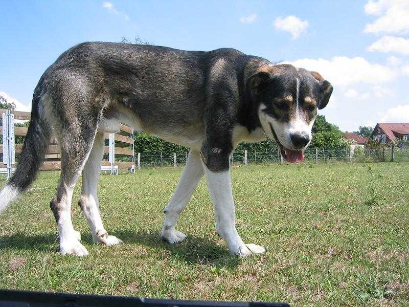 Fotos:Beschreibung:Mein Name ist Diego; ich bin ein 3 Jahre alter, kastrierter Podenco-Mastin-Espaniol-Mischlingsrüde. Die ersten 3 Jahre meines Lebens waren toll: Ich bin als Welpe zu meinem Herrchen gekommen, alles lief bestens, wir beiden waren ein Dream-Team. Dann geschah ein schrecklicher Auto-Unfall; ich war mit im Fahrzeug und wie man sieht, habe ich überlebt. Auch Herrchen hat überlebt, ist aber leider in einem Zustand, in dem er sich nie wieder um mich wird kümmern können. Schlagarteig war mein glückliches Hundeleben vorbei. Jetzt sitze ich traurig in einer Hundepension und warte auf eine zweite Chance. Ich bin ein stattlicher Rüde und man braucht etwas Zeit, um mein Vertrauen zu gewinnen. Dann gehe ich aber für meinen Menschen durch's Feuer. Ich beherrsche das Hunde-ABC, bin ein guter Beifahrer, bleibe problemlos in der Wohnung allein und laufe am Fahrrad. Gegen eine nette Hundedame hätte ich nichts. Gleichgrosse und selbstbewusste Rüden aber muss ich nicht hagen, ebenso keine Kleinkinder. Vielleicht sollten Sie uns die Chance geben, uns kennenzulernen. Ich warte in der Nähe von Hannover in einer Hundepension auf Ihren Besuch.. 12.1.12: Endlich habe ich es geschafft : Ich habe meine neue Familie gefunden und lebe jetzt in endgültig in Niedersachsen. | ||