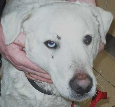 Fotos:Beschreibung:Man hat mir den Namen Rudy gegeben, ob ich zuvor schon mal einen Namen hatte, kann ich nicht sagen. Die letzten Monate waren so schrecklich, dass ich nur um mein Leben gekämpft habe und alles andere verdrängt habe. Zu Beginn der Herbstferien wurde ich ausgesetzt. Mehrere Wochen lang tauchte ich immer wieder an einer Landstrasse auf. Ich wollte schauen, ob man mich wieder abholt. Der Hunger trieb mich dann in das nächste Dorf. Eigentlich bin ich ein zutraulicher Zeitgenosse. Aber von vielen Leuten wurde ich verscheucht. Vor allem Männer traten nach mir und warfen Steine. Aber es gab auch Menschen, die Mitleid mit mir hatten und mir im Garten Futter hinstellten. Hier traf ich auf den Tierschutz. Da man absolut keinen Platz hatte, musste man mich nach der Impfung wieder laufen lassen. Da es jetzt aber so sehr frostig geworden ist, hat der Tierschutz mich notdürftig untergebracht. Keine Dauerlösung, aber beseer als im Freien zu erfrieren. Ich bin wahrscheinlich ein Labi-Huskymischlingsrüde, geschätzt 2 Jahre; besonderes Kennzeichen: Ein blaues Auge. Ich bin sehr menschenbezogen und auch verträglich mit Artgenossen. Bei Männern bin ich sehr vorsichtig, aber es gibt eine Chance mein Herz zu gewinnen: Für Leckerchen mache ich fast alles... 10.2.12: Auch ich fand Aufnahme bei tierschutzengagierten Menschen. | ||
