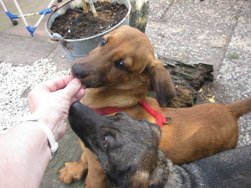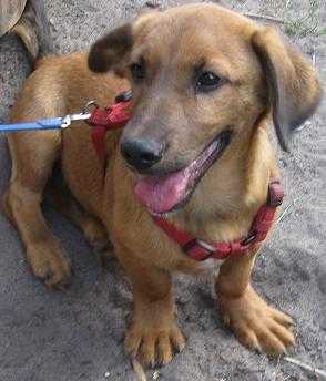 Fotos:Beschreibung:Plotzlich bin ich unter den Sorgenkindern: Dabei fühle ich mich in meiner augenblicklichen Situation sauwohl. Nachdem mein Frauchen mich wegen einer Allergie nicht behalten konnte, bin ich bei meiner Pflegemutter gelandet. Sie liebe ich über alles. Aus meiner Sicht kann alles so bleiben. Das Problem ist nur: Sie hat ein richtiges vierbeiniges Altersheim. Ich dachte, es ist gut, mal richtig Stimmung in den Laden zu bringen, aber bei den älteren Herrschaften kommt das nicht gut an. Also muss ich mich, während Frauchen arbeitet, selbst beschäftigen. Ich habe schon die Wohnung umdekoriert und den Nachbarn Proben meiner Sangeskünste geliefert. Irgendwie blieb der Applaus aus ?! Das wäre auch alles kein Problem; mein Problem ist, dass sich die 4-beinigen Senioren von mir aufgemischt fühlen und mittlerweilen teilweise richtig übellaunig sind. Also muss ich mich auf die Suche nach einem eigenen Rudel machen. Fast hätte ich vergessen, mich vorzustellen: Dackel-Viszlamischlingsrüde, 6 Monate alt. Derzeit habe ich die Grösse eines kräftigen Dackels, aber ich will noch in meine grossen Pfoten hineinwachsen. Ich bin überaus liebenswert, verträglich und verspielt. 4.10.14: Auch ich habe endlich ein Zuhause gefunden. | ||