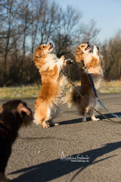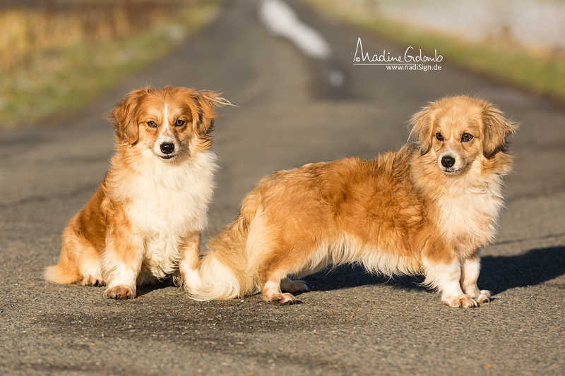 Fotos:Beschreibung:Wir sind zwei Mischlingshündinnen , zwei Schwestern. Derzeit sind wir Fremden gegenüber noch etwas zurückhaltend, fassen aber schnell Vertrauen. Als Sorgenkind kann man eigentlich nur Hanni, die dunklere von uns , bezeichnen. Während man Nanni ihre schöne buschige Rute gelassen hat, wurde mir, Hanni, meine Rute abgehackt. Dann hatte ich auch noch Pech bei der Kastration und hatte danach Probleme mit der OP-Naht. Wichtig ist für uns, dass wir einfühlsame Tierfreunde finden, die uns zeigen, dass das Hundeleben dauerhaft sicher und schön sein kann. Das Tollste wäre es, wenn wir zusammen ein Zuhause fänden, da uns das Schicksal doch sehr zusammen geschmiedet hat . Wir befürchten, dass dies nur ein Wunschtraum bleiben wird, aber andererseits sind wir doch nur zwei halbe Portionen von jeweils nicht einmal 4 Kilo Körpergewicht und knapp 28 cm Schulterhöhe !! 5.11.16: Jetzt hat der Tierschutz über ein Jahr versucht, uns einzeln zu vermitteln - ohne Erfolg. Alles, was an Selbstbewusstsein bei uns aufgebaut wurde, brach bei einer Trennung zusammen. Endlich haben auch die Tierschützer eingesehen : Wir wollen uns nicht trennen ! Also wird die Suche nach einem Zuhause für uns gemeinsam gestartet: Wir sind bei unseren Bezugspersonen fröhlich, neugierig, anhänglich und sehr verschmust. Unsere grosse Leidenschaft ist Gassigehen. Das Wichtigste aber ist auch dabei, dass wir zusammen sind. 24.1.17 : Eines wird für alle immer deutlicher: Wir beiden wollen nie mehr auseinander gehen. Den ganzen Tag schmusen und spielen wir miteinander und passen aufeinander auf. Jetzt hatten wir ein richtiges Fotoshooting und gemeinsam haben wir auch das bestens gemeistert... 17.4.17: Auch die Ostertage mussten wir im Zwinger verbringen. Da tröstet auch wenig der nette Spiekamerad. Der kleine Dackel hat nämlich ein Zuhause, bei unserer Fotografin. Dagegen können wir beide nur weiter hoffen.... 24.8.17 : Wir haben es geschafft, wir haben zusammen ein Zuhause gefunden. Das Familienleben ist zwar noch sehr aufregend , aber wir sind mit Eifer bei der Sache. Herrchen hat noch eine ältere Cockerdame, sie zeigt uns, wie alles läuft. Zu unserem Bedauern zeigt sie uns auch ganz deutlich, dass nur sie in Herrchens Bett schlafen darf. Aber Hauptsache ist, dass wir uns haben. | ||