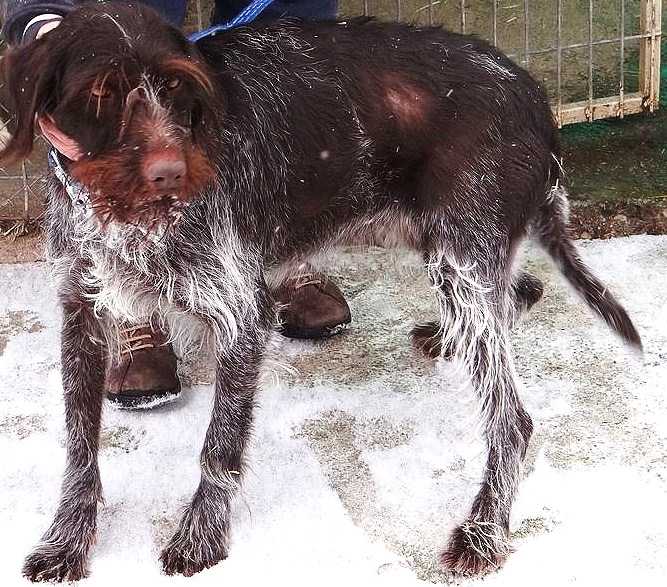 Fotos:Beschreibung:Ich bin die Funny, eine ca. 7 Jahre alte, mittlerweilen kastrierte Dt.-Drahthaarmischlingshündin. Mein bisheriges Leben war alles andere als schön, was man auch derzeit noch an meinem Fell sehen kann. Ich bin anhänglich und verschmust; nach einer Erholung werde ich wohl, meiner Rasse entsprechend, auch unternehmungslustig und lauffreudig werden. Darf ich für die zweite Lebenshälfte bei Ihnen einziehen ? 25.4.16: Über eine andere Tierschutzorganisation durfte ich die Reise antreten | ||